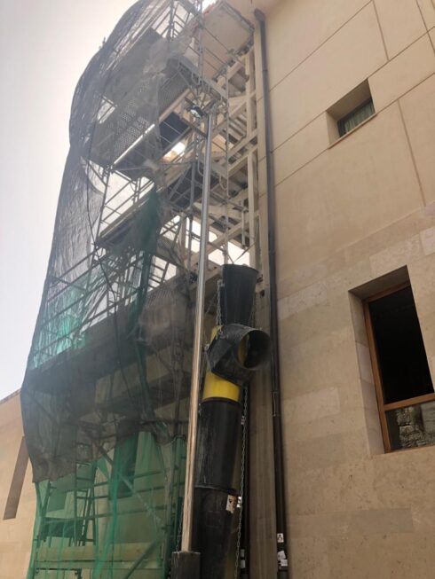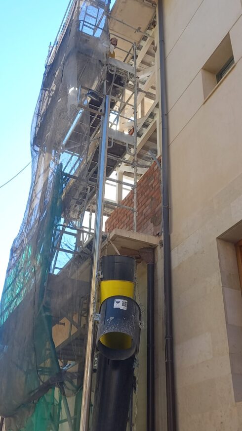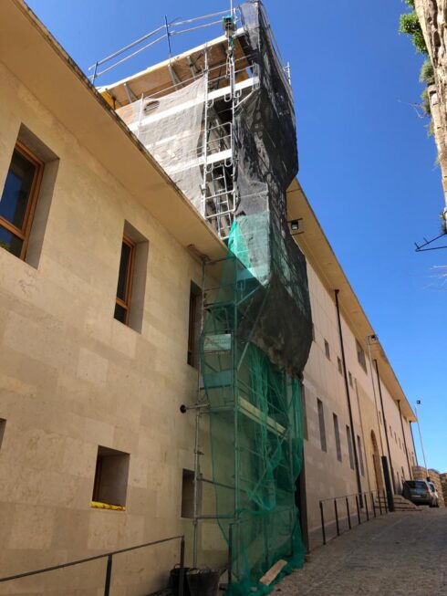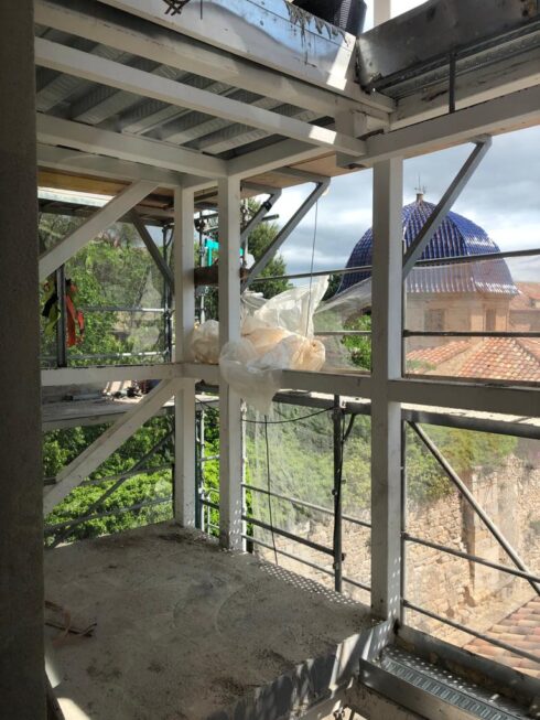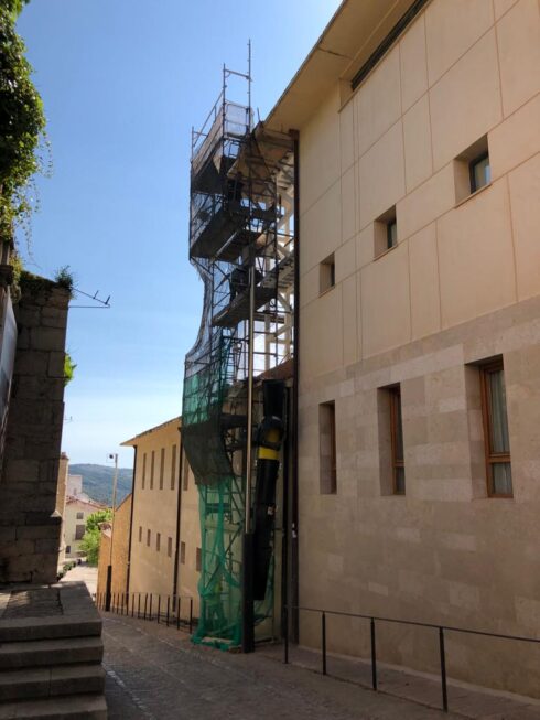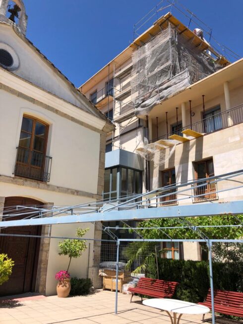 Continúan los avances de la reforma con adecuación estructural y de fachada para la instalación de un ascensor en RPMD San Juan Bautista en la localidad de Morella, provincia de Castellón dirigidos por el arquitecto Cristina Fortanet.
