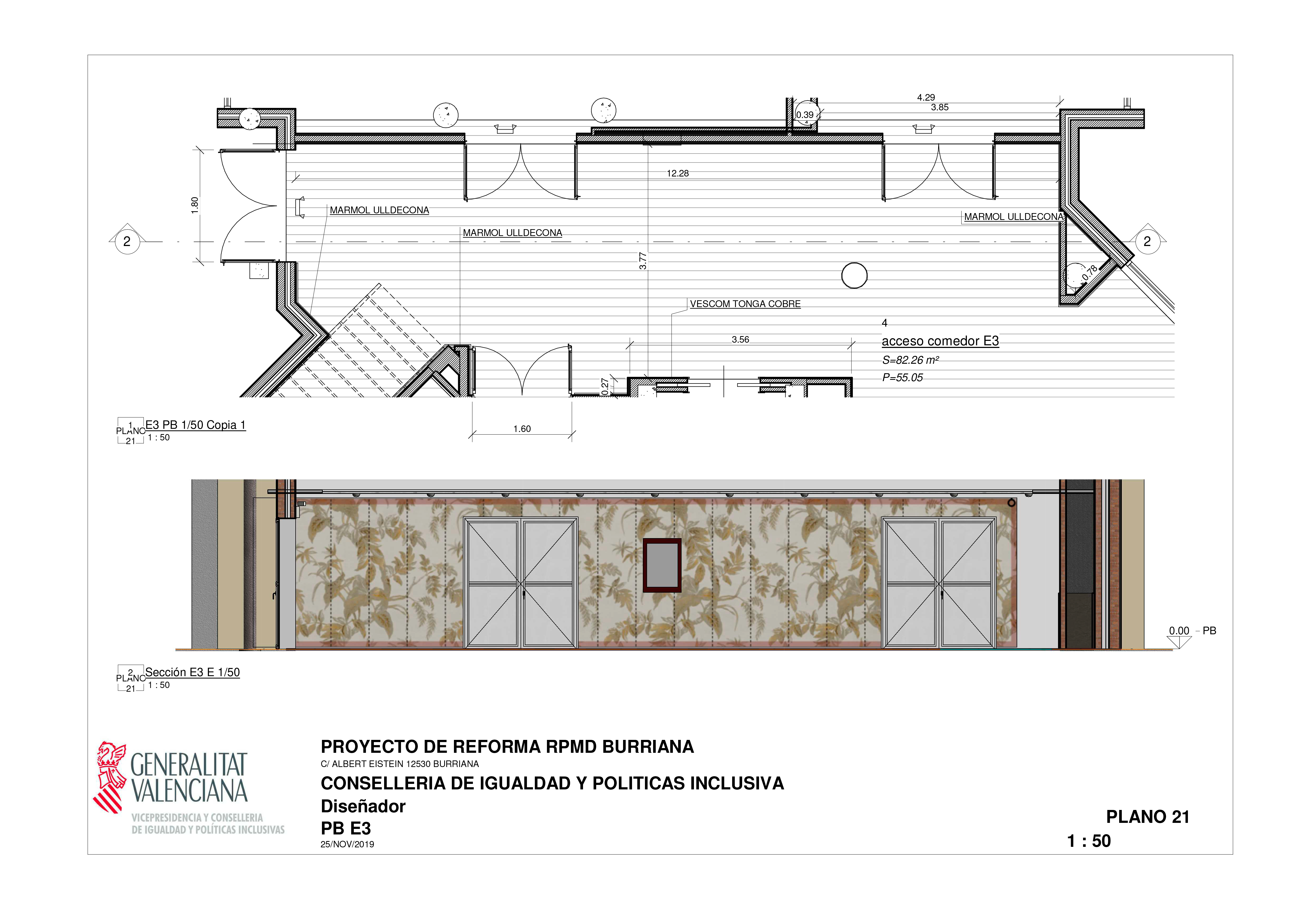 Las nuevas actuaciones se centran en acabar la escalera E2 y en el comedor, dónde se desea cerrar el lado izquierdo del mismo y tener paso únicamente en el lado derecho. A continuación dejamos galería de fotos dónde se pueden apreciar los avances realizados y los planos del proyecto.